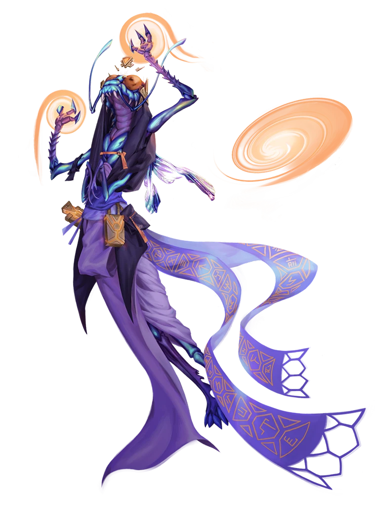 Shirrens define themselves by their choices and bristle against all forms of oppression. They enjoy cultural exchange, and while most eagerly adopt the deities and practices of other communities, others hold passionately atheistic worldviews that reject divine worship in favor of centering secular mortal experiences. Many shirren communities pay homage to Hylax, a benevolent deity believed to be the progenitor of their species. Hylax's faith is in turn shaped by her shirren followers, who believe her to be the pinnacle of unity without conformity.
