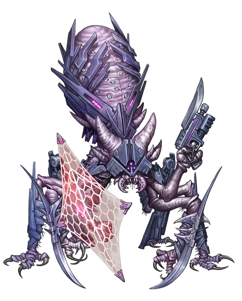 With countless bases and fleets operating in deep space, jinsuls mostly act as raiders, scavenging for equipment and testing their mettle against other species. Indoctrinated to view themselves as a superior species, with only other inhabitants of the Scoured Stars having any value, jinsuls prefer to engage in short-ranged combat with their foes.