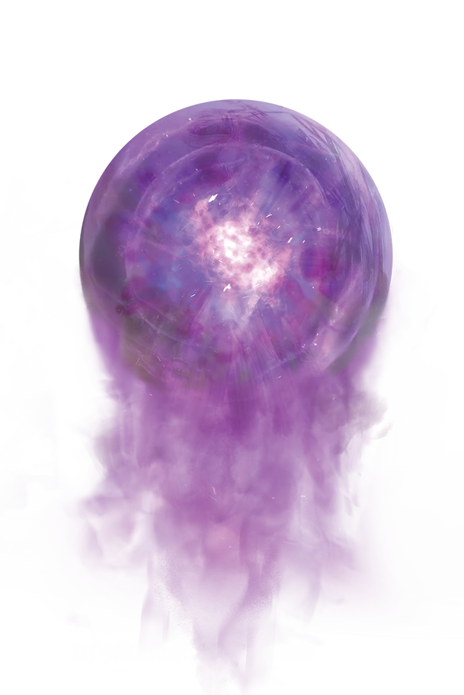 Purple orbs are eager for cooperation and solidarity with their chosen friends and family, whether those are other sapient orbs or completely different beings, making it relatively easy to befriend them—or deceive them. Purple orbs are devout supporters and defenders of their companions, flinging themselves bodily into the fray if a friend is in danger. They become a deep dark purple as they grow more emotional in the heat of conflict (violent or otherwise), though their emotions rarely grow so intense that they're willing to take another being's life. That purple orbs seem to value their own lives less than those of their friends might be among the reasons that the number of sapient purple orbs in the universe seems to be dwindling.