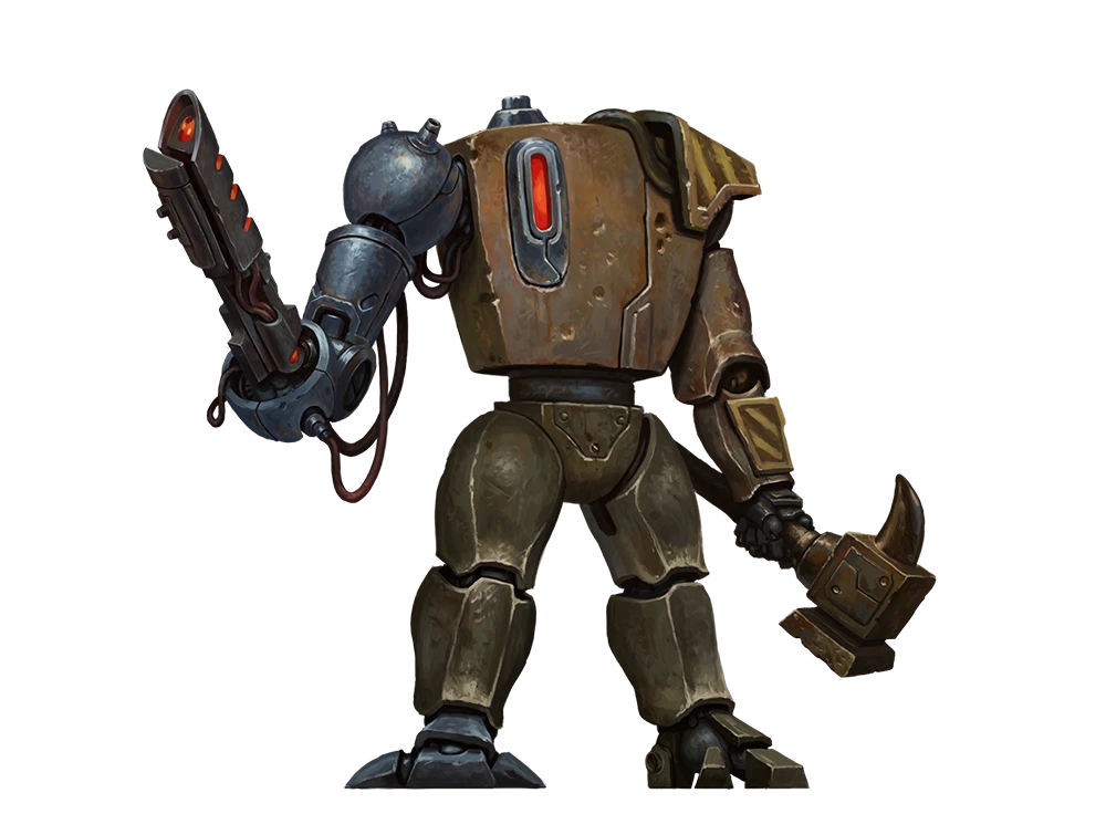 Most line-class soldier robots are lanky, headless humanoid machines. They have four-fingered hands and armored torsos painted in their owner's livery, with a single red sensor in the upper torso. By default, they're armed with bargain-brand laser rifles and breaching hammers. Each is 5 feet tall and weighs 300 pounds.