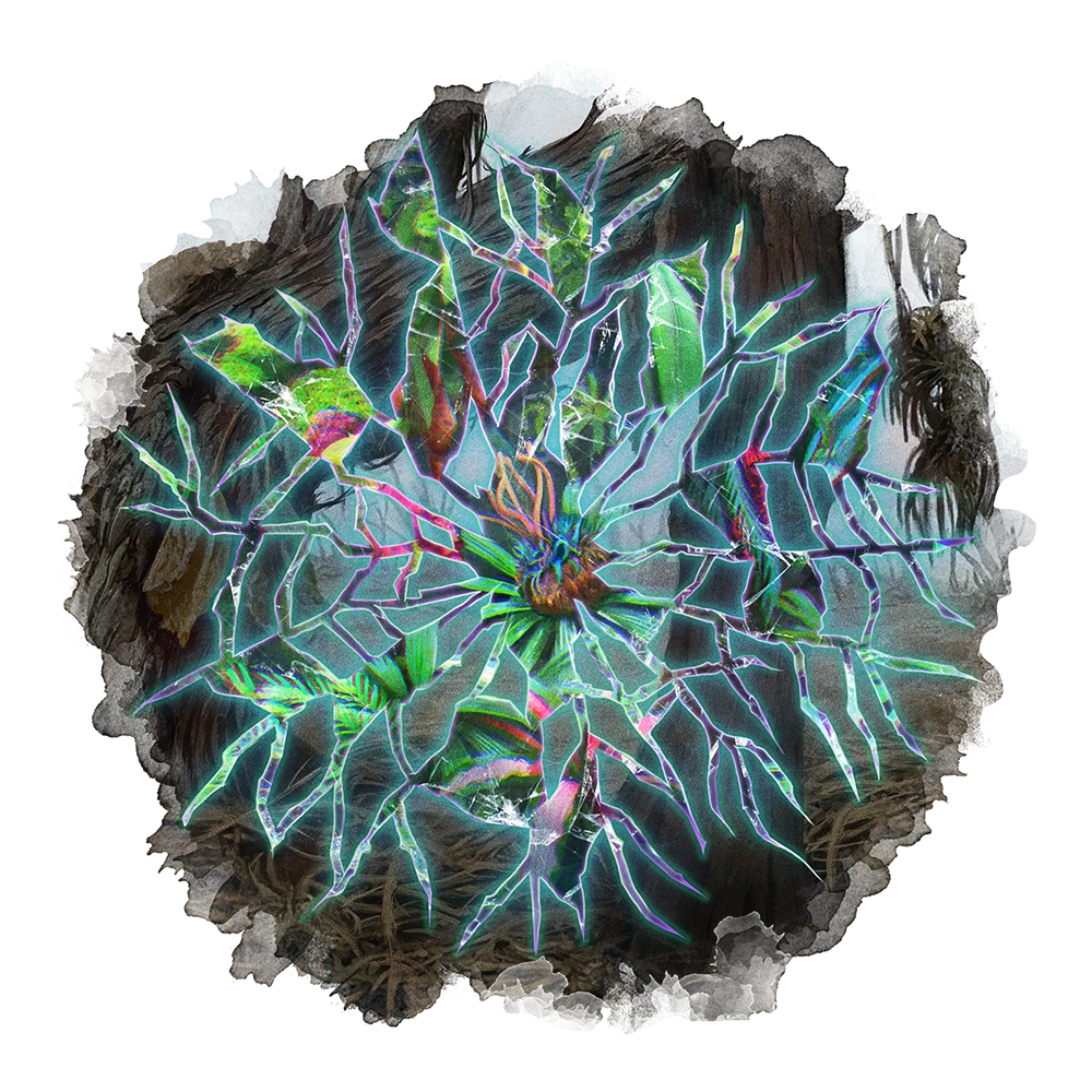 A wayward warp is a living dimensional rift that causes unexpected havoc as they twist the world around them. No two wayward warps look the same, and no wayward warp keeps the same appearance for very long; every time a wayward warp moves, a different potential reality reveals itself. The warp themself is a rift at the center of the aura that appears like a tear in reality, often taking a shape vaguely resembling a feather star whose tentacles are lined with shard-like cracks in space itself.