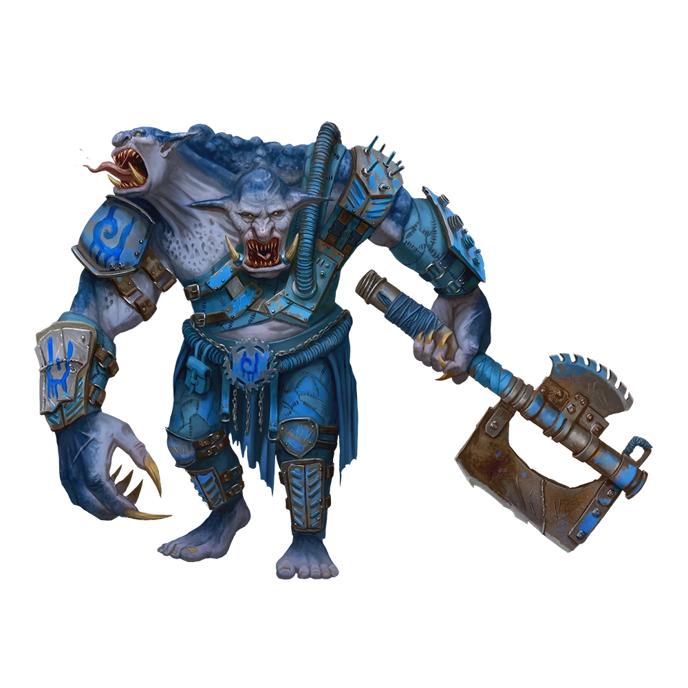 Frequency once per day; Effect The mutant troll rips themself apart into two separate Large-sized entities, sharing one fractured sentience between them. While in this form, the mutant troll halves share a communal Hit Point pool and have 4 actions to share between them on their turn. If both halves are included in an area of effect, they must both attempt saving throws, taking the worse result, but only taking damage once.